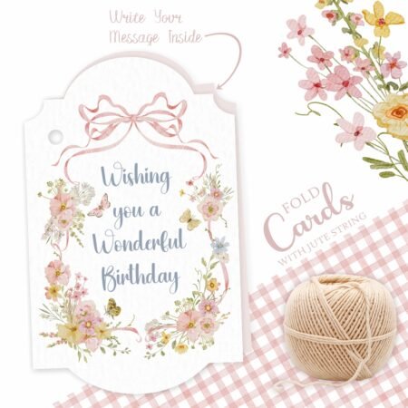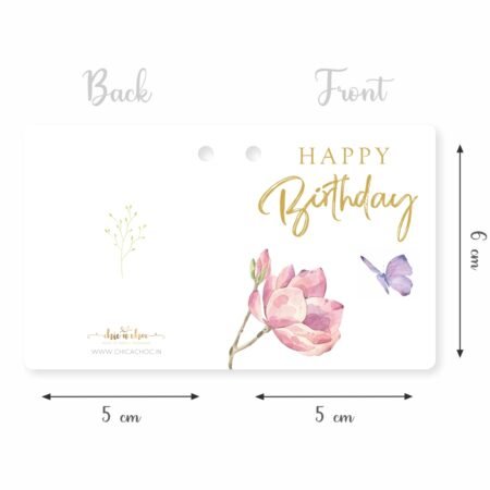 ₹150.00Original price was: ₹150.00.₹150.00Current price is: ₹150.00.Packs of ‘Happy Birthday’ Fold Card Gift Tags in an elegant Pink Floral with Butterfly design done in watercolour. These tags are perfect for tagging with all types of gifts, hampers and return favours for Birthday celebrations. They will also perfectly compliment the boxes of your savouries such as cakes, brownies, cupcakes, chocolates, candies, muffins, ladoos and other mithai….