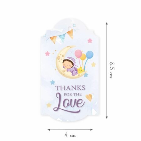 ₹175.00Original price was: ₹175.00.₹175.00Current price is: ₹175.00.Pack of 50 ‘Thanks for the Love – Baby Shower / Birth Ceremony / Baby Celebration’ – Gift Tags in an adorable lilac watercolour design. The lilac colour is suitable for both boy and girl celebrations and are perfect tags for all types of return gifts. They will also perfectly compliment the boxes of your savouries such as cakes, brownies, cupcakes, chocolates, candies, muffins, ladoos ……