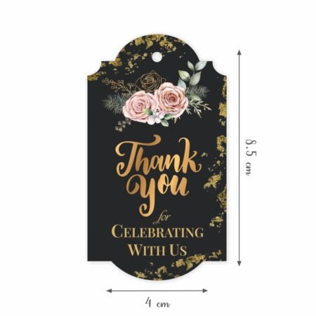 -14% Off₹175.00Original price was: ₹175.00.₹150.00Current price is: ₹150.00.Packs of ‘Thank You For Celebrating With Us ‘Black & Gold’ – Gift Tags in an premium floral watercolour design. You’ll love these adorable Gift Tags from Chic a Choc. Be it weddings, baby showers, birthday parties or other occasions, these tags are perfect tags for all types of return gifts. They will also perfectly compliment the boxes of your savouries such as cakes, brownies……