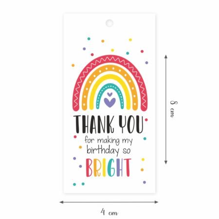 -14% Off₹175.00Original price was: ₹175.00.₹150.00Current price is: ₹150.00.Pack of 50 ‘Thank You For Making My Birthday So Bright’ – Gift Tags in an adorable design. You’ll love these colourful Gift Tags from Chic a Choc. The tags are perfect tags for all types of Birthday return gifts and favours. They will also perfectly compliment the boxes of your savouries such as cakes, brownies, cupcakes, chocolates, candies, muffins, ladoos and other mithai. Printed on 350 GSM high-quality paper. A ball of string is supplied with each set of gift tags. All tags have pre-punched holes to attach the string.