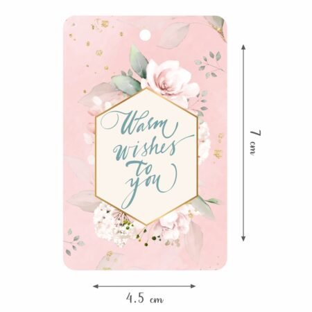 -33% Off₹200.00Original price was: ₹200.00.₹135.00Current price is: ₹135.00.This pack contains 50 ‘Warm Wishes to You‘ gift tags with a white back for writing messages. The tags feature a pink roses watercolor design and come with jute string for attaching to gift or cake boxes. These premium tags from Chic a Choc will add an elegant touch to your gifts, hampers, and savories. There is ample space for writing notes or messages, making them perfect for attaching to delivery boxes of homemade savories such as cakes, brownies, cupcakes, and chocolates.
