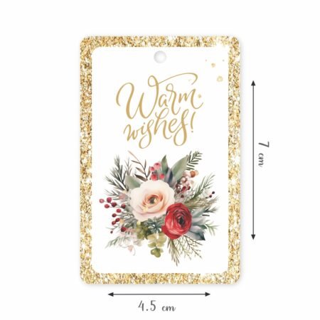 -33% Off₹200.00Original price was: ₹200.00.₹135.00Current price is: ₹135.00.This pack contains 50 ‘Warm Wishes‘ gift tags with a white back for writing messages. The tags feature a winter flowers watercolor design and come with jute string for attaching to gift or cake boxes. These premium tags from Chic a Choc will add an elegant touch to your gifts, hampers, and savories. There is ample space for writing notes or messages, making them perfect for attaching to delivery boxes of homemade savories such as cakes, brownies, cupcakes, and chocolates.