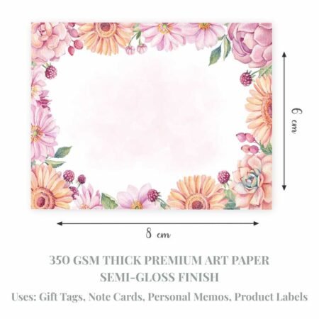-30% Off₹250.00Original price was: ₹250.00.₹175.00Current price is: ₹175.00.Add a charming touch to any gift, sweet treat, or personal message with these beautifully designed Floral Border Note Cards. Each card features a delightful pink and peach floral pattern and is printed on premium 350 gsm imported art card paper with a glossy finish. Whether you’re labeling cake boxes, attaching notes to gifts, or simply leaving a thoughtful memo at home or the office, these versatile cards offer endless possibilities. Let your creativity shine by customizing each card with your own special message.
