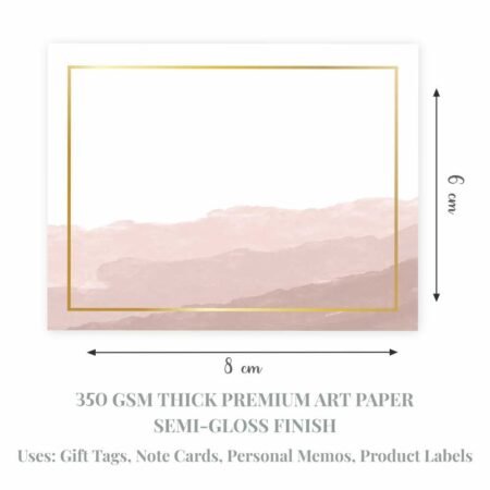 -30% Off₹250.00Original price was: ₹250.00.₹175.00Current price is: ₹175.00.Add a touch of sophistication to your messages and gifts with these Rose Gold Watercolor Note Cards. Each card features a modern, minimalist watercolor design in soft rose gold tones, bordered by a subtle metallic outline. Printed on high-quality 350 gsm imported art card paper with a glossy finish, these cards are perfect for personal notes, labeling cake boxes, attaching to gift bags, or simply leaving a heartfelt message. Whether for weddings, birthdays, corporate events, or everyday use, this pack of 50 ensures you’ll always have a stylish card on hand.