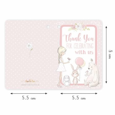 -40% Off₹250.00Original price was: ₹250.00.₹150.00Current price is: ₹150.00.Packs of ‘Thank You For Celebrating With Us’ – Folding Gift Card Tags for Birthdays, Birth Celebrations, Baby Shower – in an adorable pink, bunnies, bear and balloon design done in watercolour. These tag cards are perfect for occasions like Girl Birthdays, Baby Shower, Baby Birth Ceremony Gifts, return gifts and hampers. They will also perfectly compliment the boxes of your savouries such as cakes…