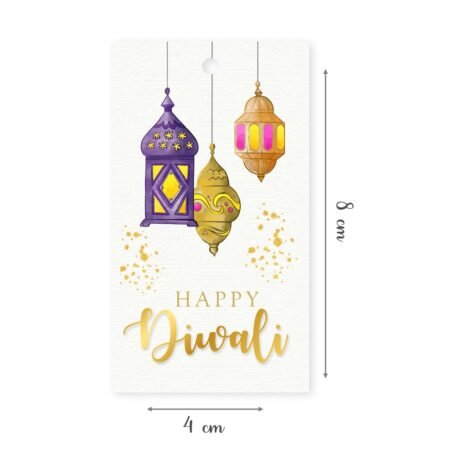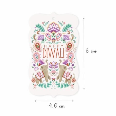 ₹175.00Original price was: ₹175.00.₹175.00Current price is: ₹175.00.‘Happy Diwali’ gift tags with a graceful Purple and Golden Lamps design in watercolours. These ‘large-sized‘ stylish tags from Chic a Choc are a perfect accessory for your Diwali gifts, cake boxes, order supplies and other packaging. So, go ahead and add that sparkle and style to your Diwali Packaging this festive season.