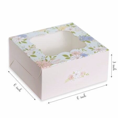 Great packaging always speaks volumes about your products! And that’s what we intend to do for you! This elegant box designed by Chic a Choc is perfect for holding a 6-inch mini cake, cake slices, pastries, tarts, pies or other small baked delights with sheer ease. Displaying a stylish watercolour Pink Floral print and made with premium paper food grade board, this one is a perfect blend of quality, utility and good looks.