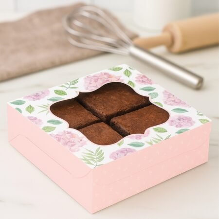 - 33 % OffSelect options This product has multiple variants. The options may be chosen on the product page₹200.00 – ₹1,850.00All we need is love… and lots of brownies! Well, this is what we bring to you – a brownie box made with love, to pack those amazing brownies that you can quickly devour! Adorned with an exquisite pink floral pattern featuring peony flowers and made with best-in-class food grade paper board, this highly attractive box by Chic a Choc is just the right packaging for your delicious brownies. Easy to open, close, carry around, or transport, the box speaks quality inside-out. Moreover, a transparent window on top grants customers a tantalizing preview of the delectable contents concealed within.