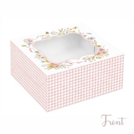 Great packaging always speaks volumes about your products! And that’s what we intend to do for you! This elegant box designed by Chic a Choc is perfect for holding a 6-inch mini cake, cake slices, pastries, sandwiches, tarts, pies or other small baked delights with sheer ease. Displaying a stylish watercolour Gingham Check Pink Floral print and made with premium paper food grade board, this one is a perfect blend of quality, utility and good looks.