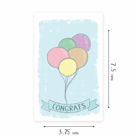 -43% Off₹175.00Original price was: ₹175.00.₹99.00Current price is: ₹99.00.Pack of 100 ‘Congrats’ – Gift Tags in an adorable balloons design in watercolours. The colour is suitable for both boy and girl celebrations and are perfect tags for all types of return gifts. They will also perfectly compliment the boxes of your savouries such as cakes, brownies, cupcakes, chocolates, candies, muffins, ladoos and other mithai. Printed on 350 GSM high-quality paper. A ball of string is supplied with each set of gift tags. All tags have pre-punched holes to attach the string.