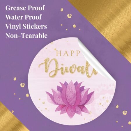 -20% Off₹150.00Original price was: ₹150.00.₹120.00Current price is: ₹120.00.‘Happy Diwali’ Stickers in an elegant Pink Lotus design done on a traditional handmade paper background in watercolour. These premium stickers from Chic a Choc are made from Non-Tearable, Grease Proof, Water-Proof sheets. These stickers will add a touch of style to your gifts, cake boxes, and supplies of savouries. These can be used on pickle jars and other glass jars, as well.