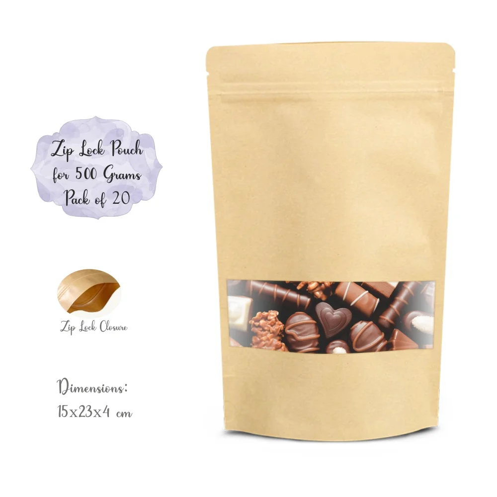 Zip Lock Pouch for 500 grams – Kraft – 15×23 CM (Pack of 20)