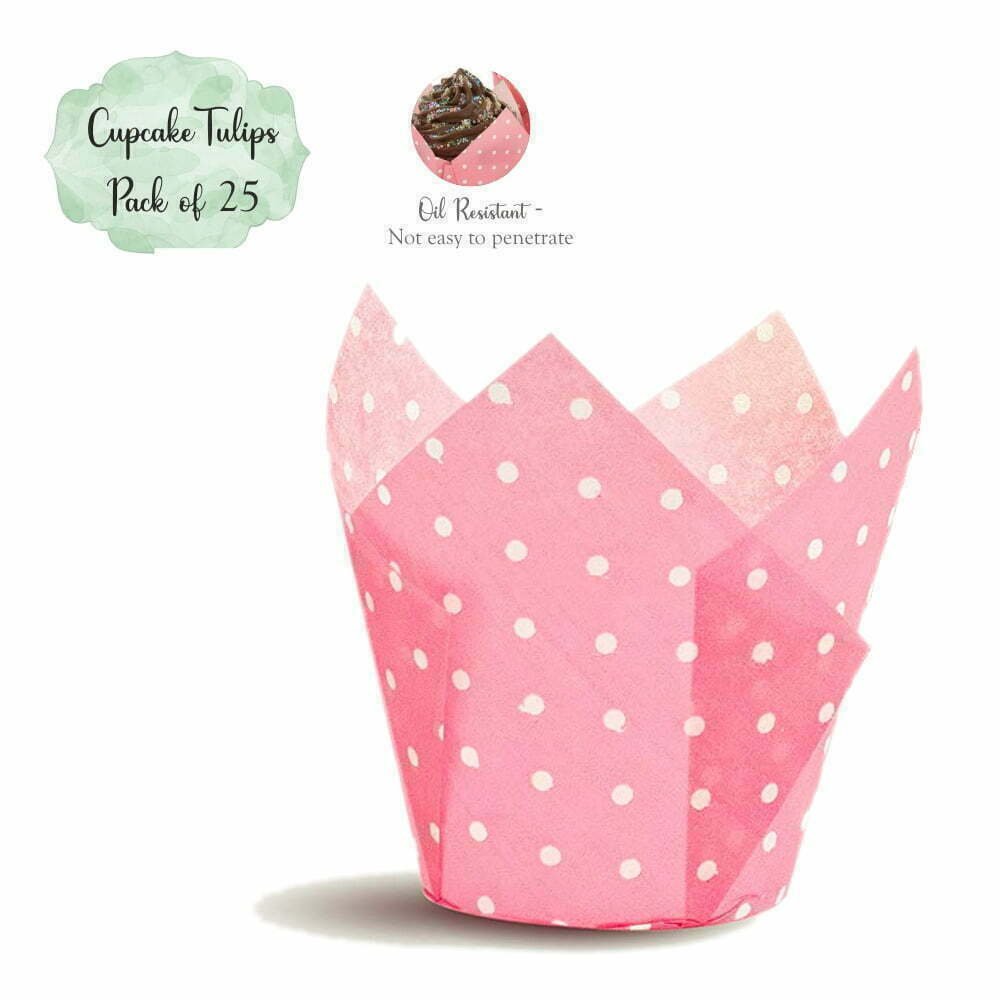 Tulips - Muffin Cupcake Liners - Pink with Polka Dots (Pack of 25)
