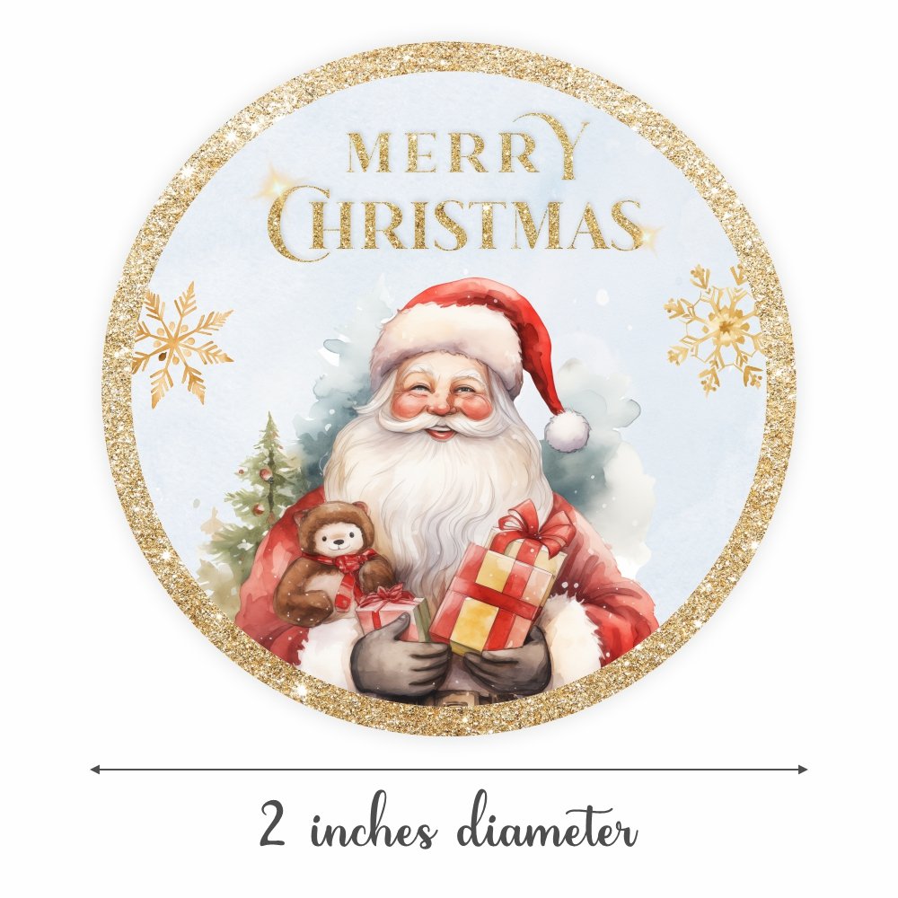 Merry Christmas – Santa Watercolour – Vinyl Non Tearable Stickers – Pack of 50