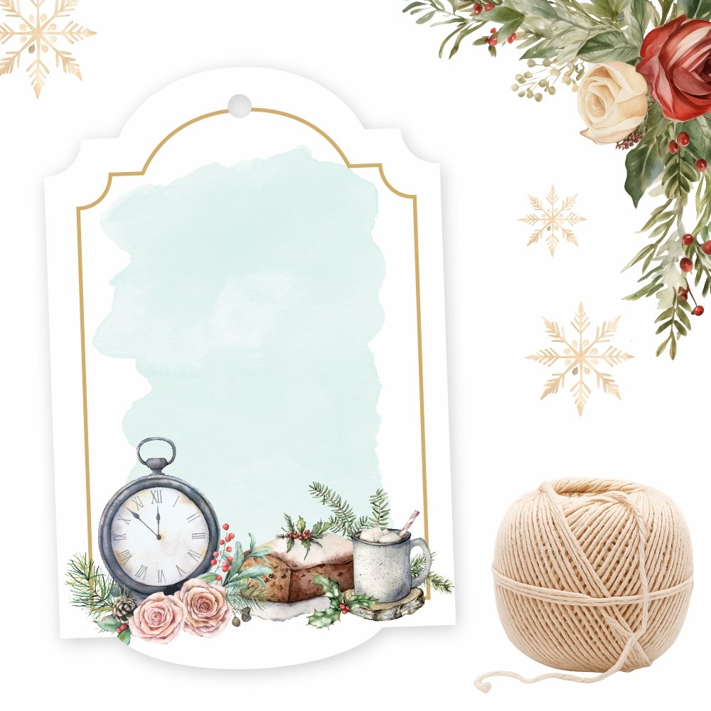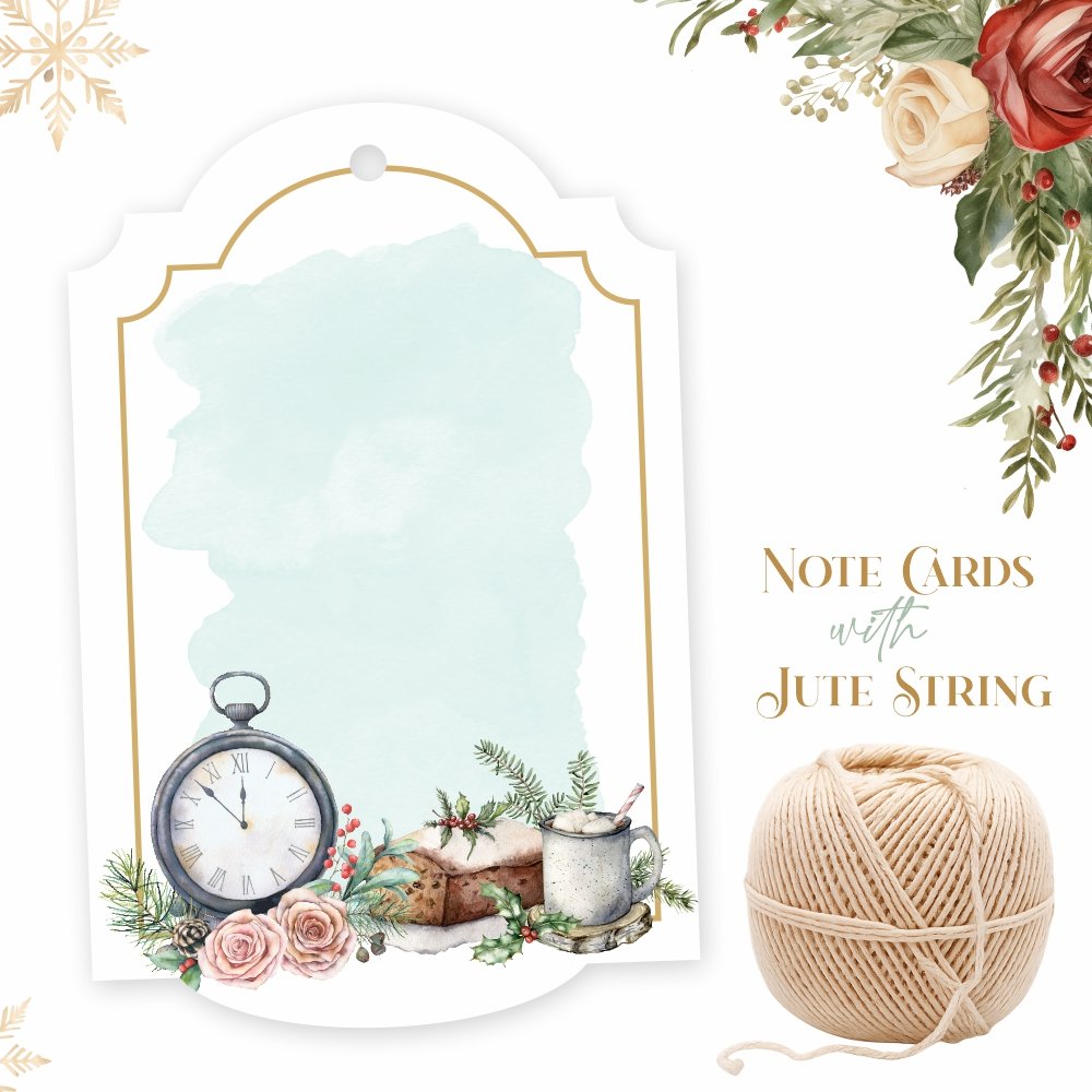 Introducing the ‘Christmas & New Year – Note Card Gift Tags,’ presented in an exquisite pastel watercolor floral design. These premium note cards from Chic a Choc are designed to enhance the elegance of your gifts and party favors. Each card provides ample space for personal notes or messages. These tags are ideally suited to complement boxes of homemade delicacies, including cakes, brownies, cupcakes, and chocolates. Additionally, they serve as a perfect medium for writing invitations and conveying well-wishes and messages.