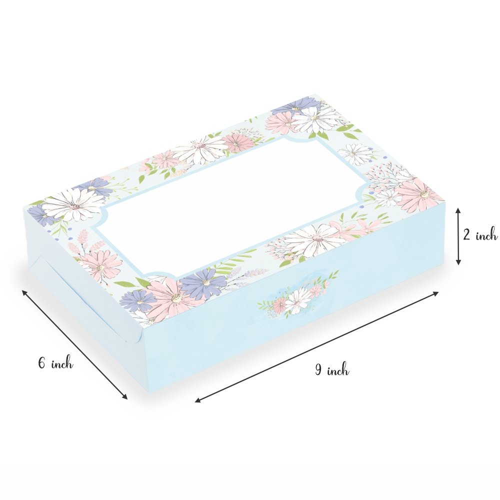 BROWNIE BOX FOR 6 – BLUE FLORAL – DAISY (6x9x2) (Pack of 8)