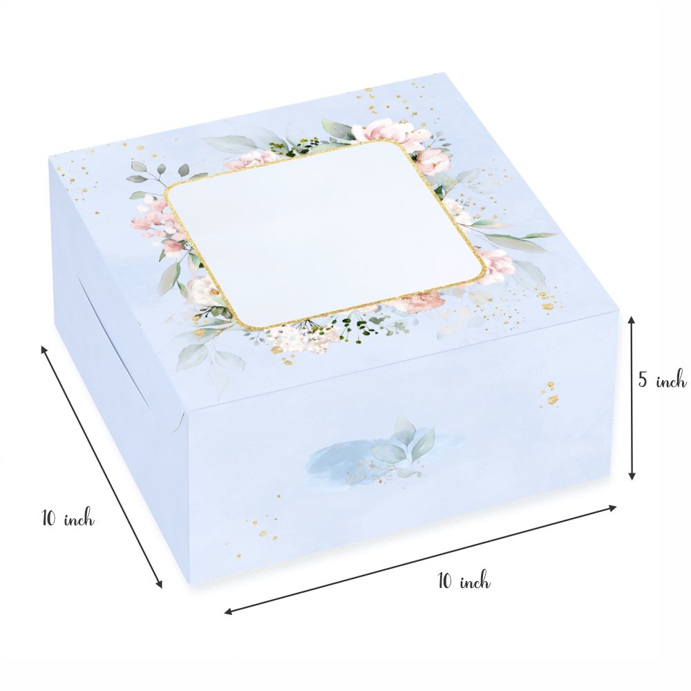 CAKE BOX FOR 1 KG-2 KG - 10X10X5 INCH - Misty Blue Floral (Pack of 5) 325 gsm