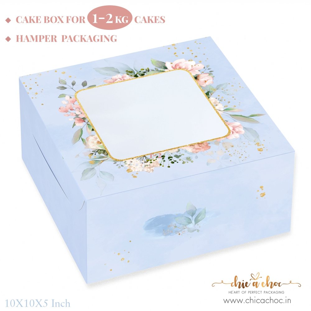 CAKE BOX FOR 1 KG-2 KG – 10X10X5 INCH – Misty Blue Floral (Pack of 5) 325 gsm