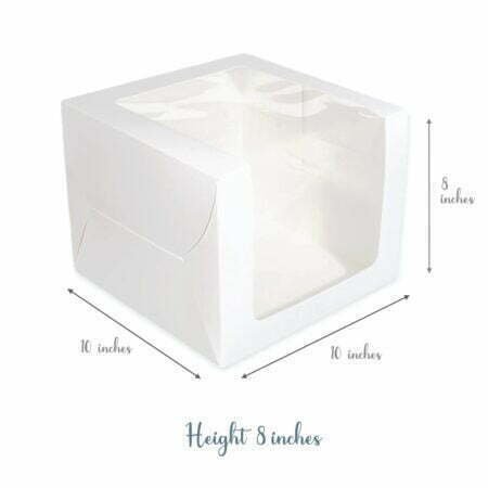 - The box is square in shape and is designed to hold Four Cupcakes / Half Kg Cake.