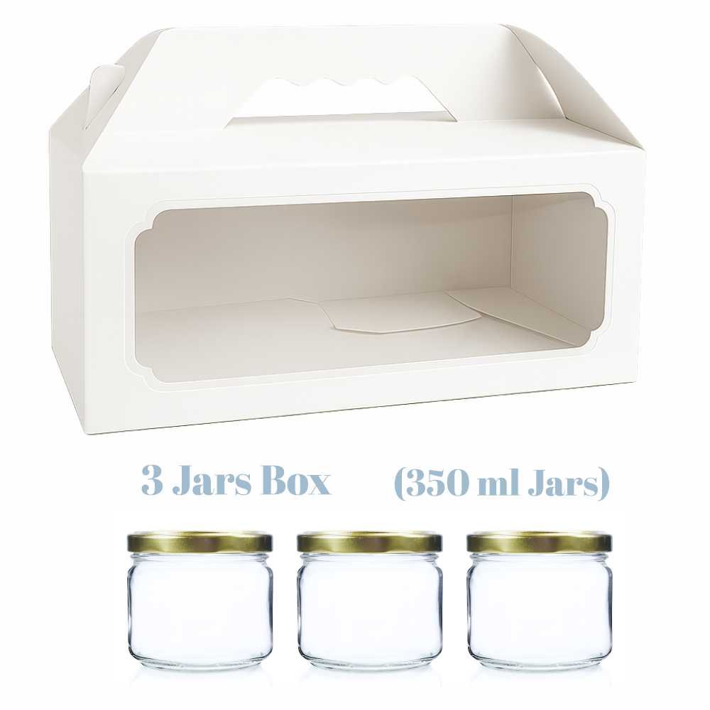 Introducing our exquisitely designed premium white box, specially crafted to showcase your baking masterpieces! This sturdy yet elegant box is perfect for storing and transporting your freshly baked loaf cakes, tea-time cakes, and breads. Its spacious interior can comfortably hold three 350ml jars, making it an ideal choice for bakeries, home bakers, and food enthusiasts.