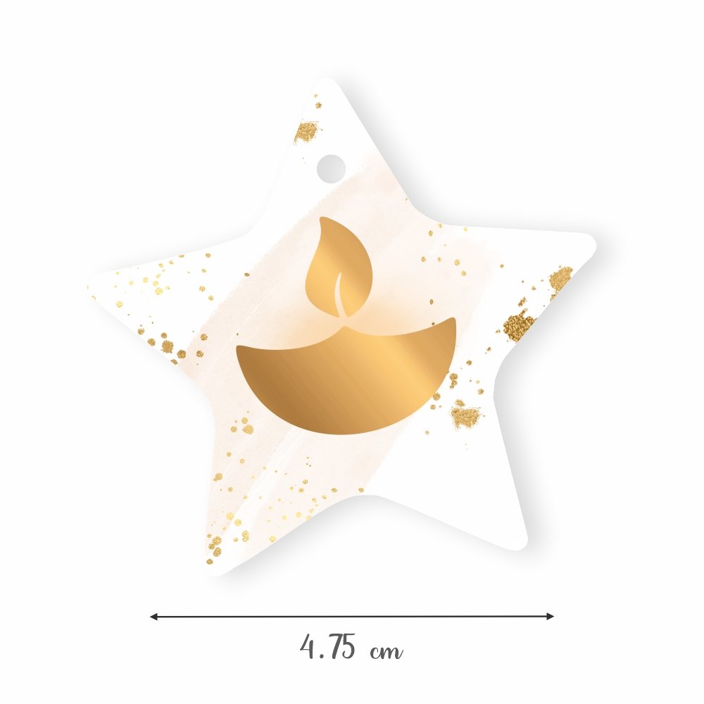 ‘Happy Diwali’ gift tags in an elegant golden star-diya theme. These beautiful tags from Chic a Choc are a perfect accessory for your Diwali gifts, cake boxes, order supplies and other packaging. So, go ahead and add that sparkle and style to your Diwali Packaging this festive season.