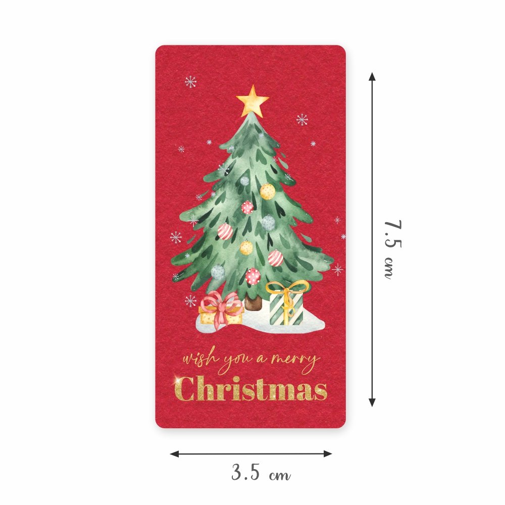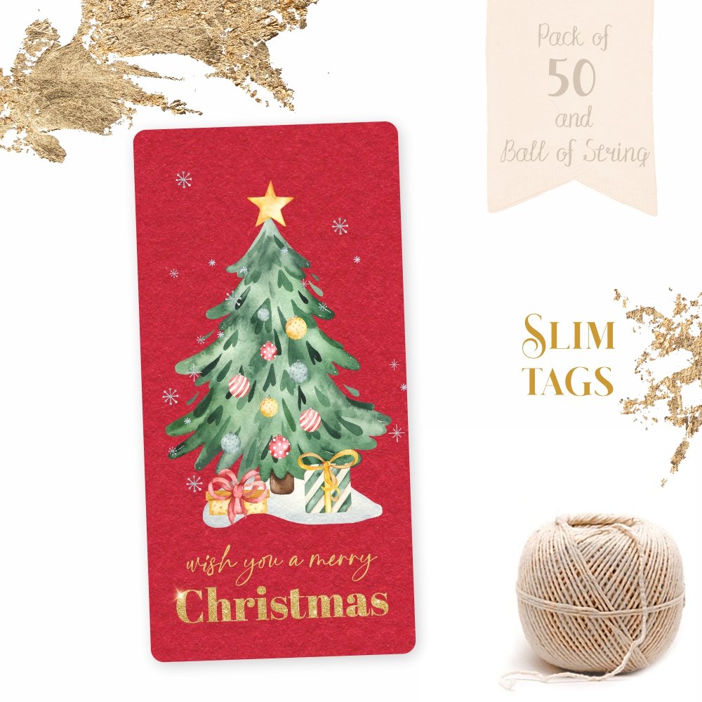 Wish You a Merry Christmas – Tree and Gifts (Red) – Gift Tags – Pack of 50